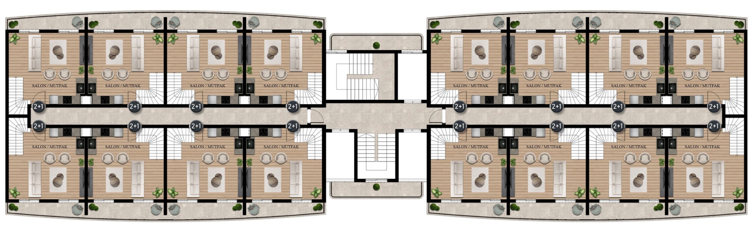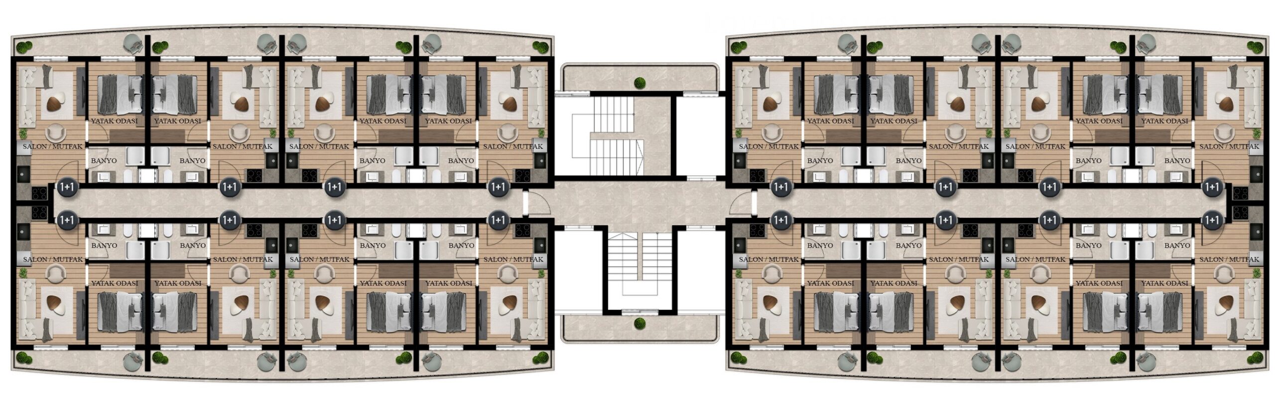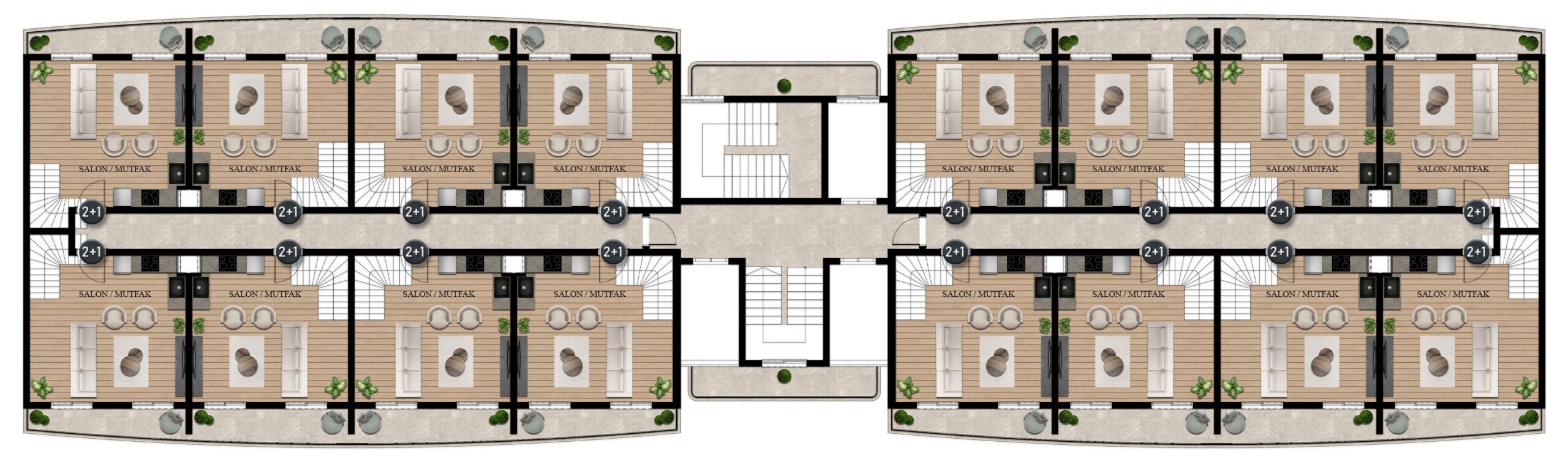 Projemiz, her ihtiyaca uygun geniş seçenekler sunan 1+1, 2+1 ve ferah dubleks daireleri ile şık ve fonksiyonel bir yaşam alanı vadediyor. Sadece bir ev değil, eksiksiz bir sosyal yaşam alanı sunan projemizde hemen yerinizi alın.